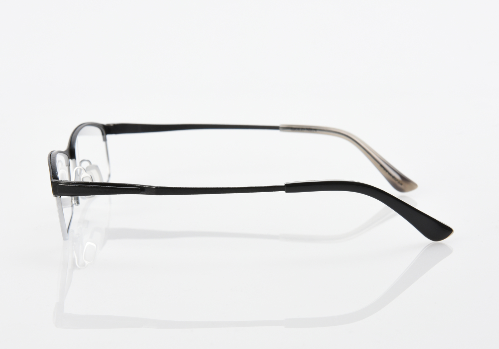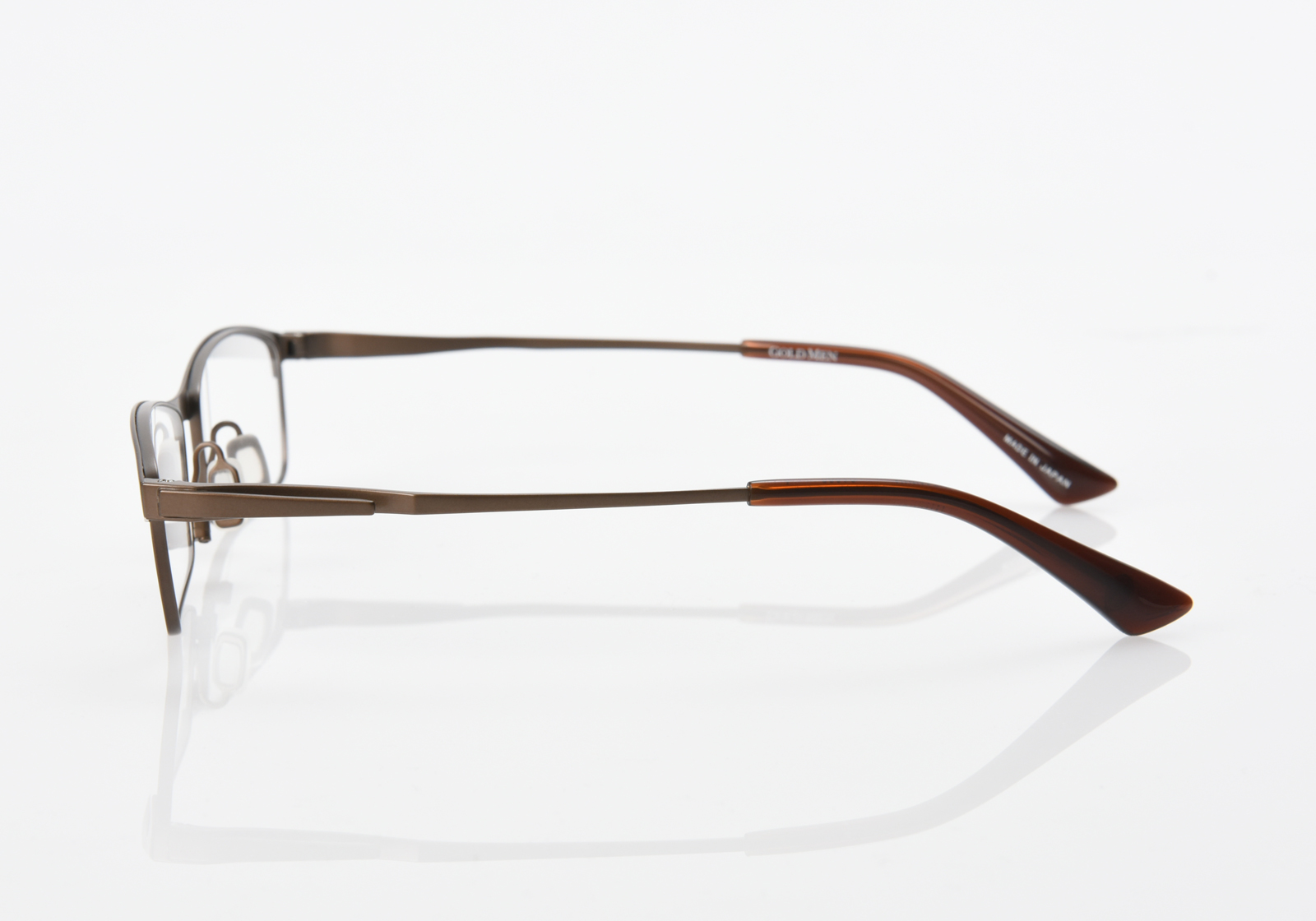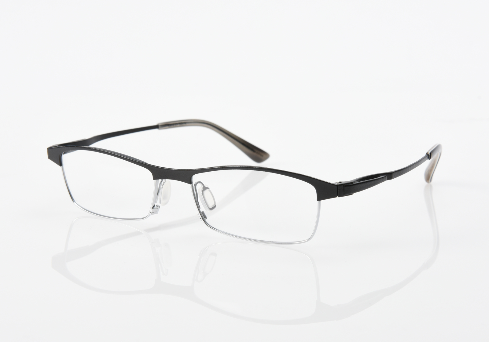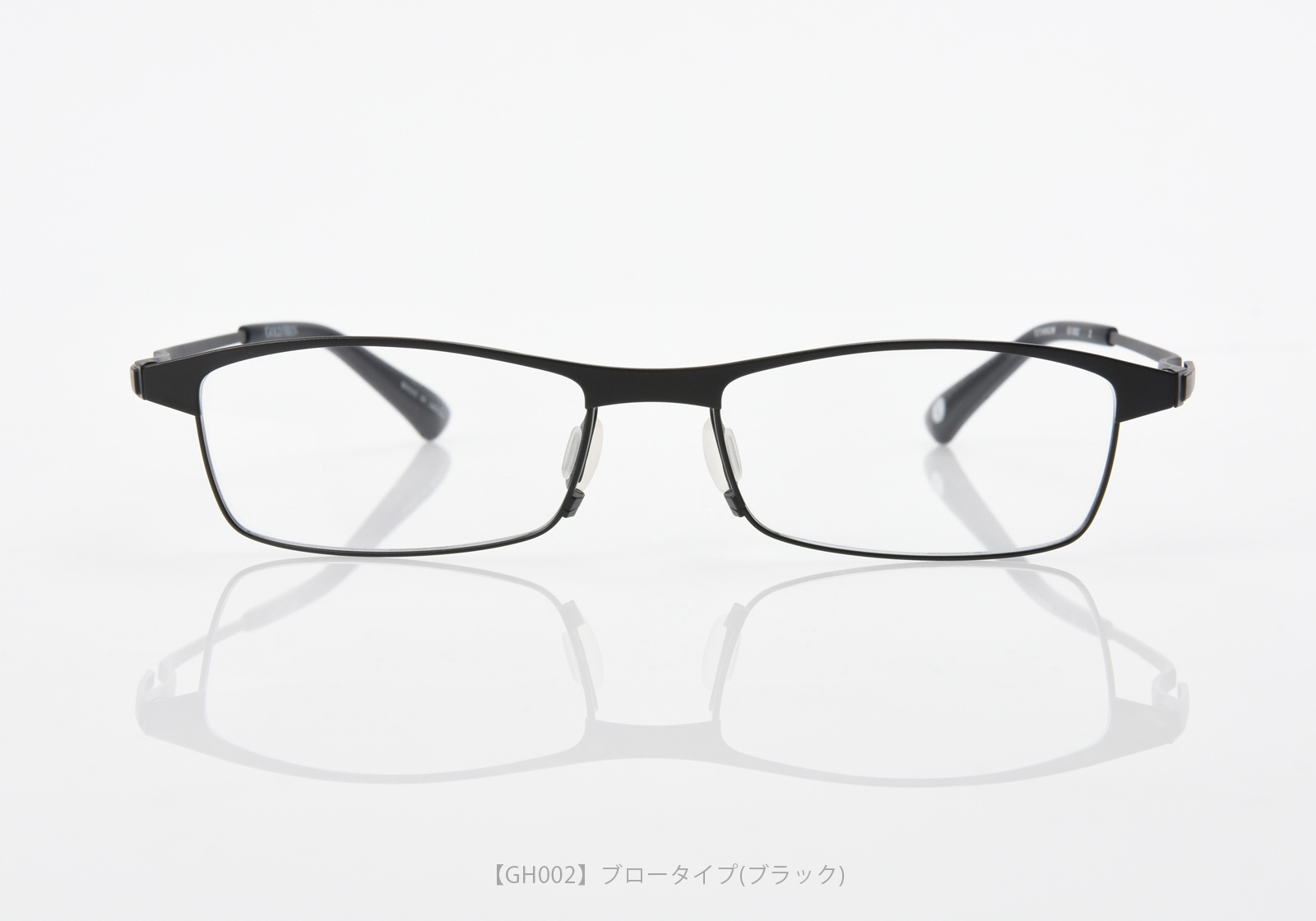 眉が強調され、目元にインパクトをあたえるブロータイプ。流麗なラインを描いたリムレスな形状は、